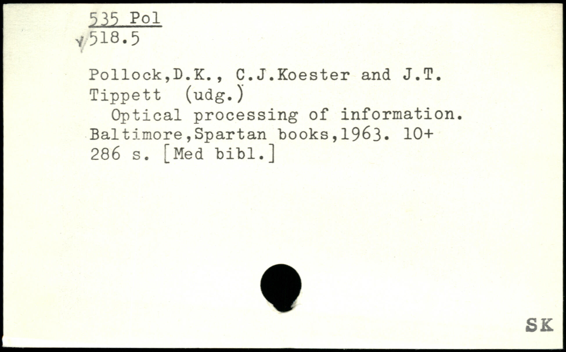 Pollock,D.K., C.J.Koester and J.T. Tippett (udg.) Optical processing of information.