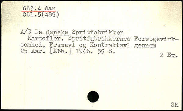 A/S De danske Spritfabrikker Kartofler. Spritfabrikkernes Forsøgsvirksomhed, Fremavl og Kontraktavl gennem 25 Aar. [Kbh.] 1946.