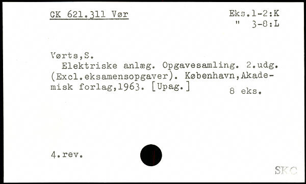 Elektriske anlæg. Opgavesamling. 2,udg. (Excl.eksamensopgaver).