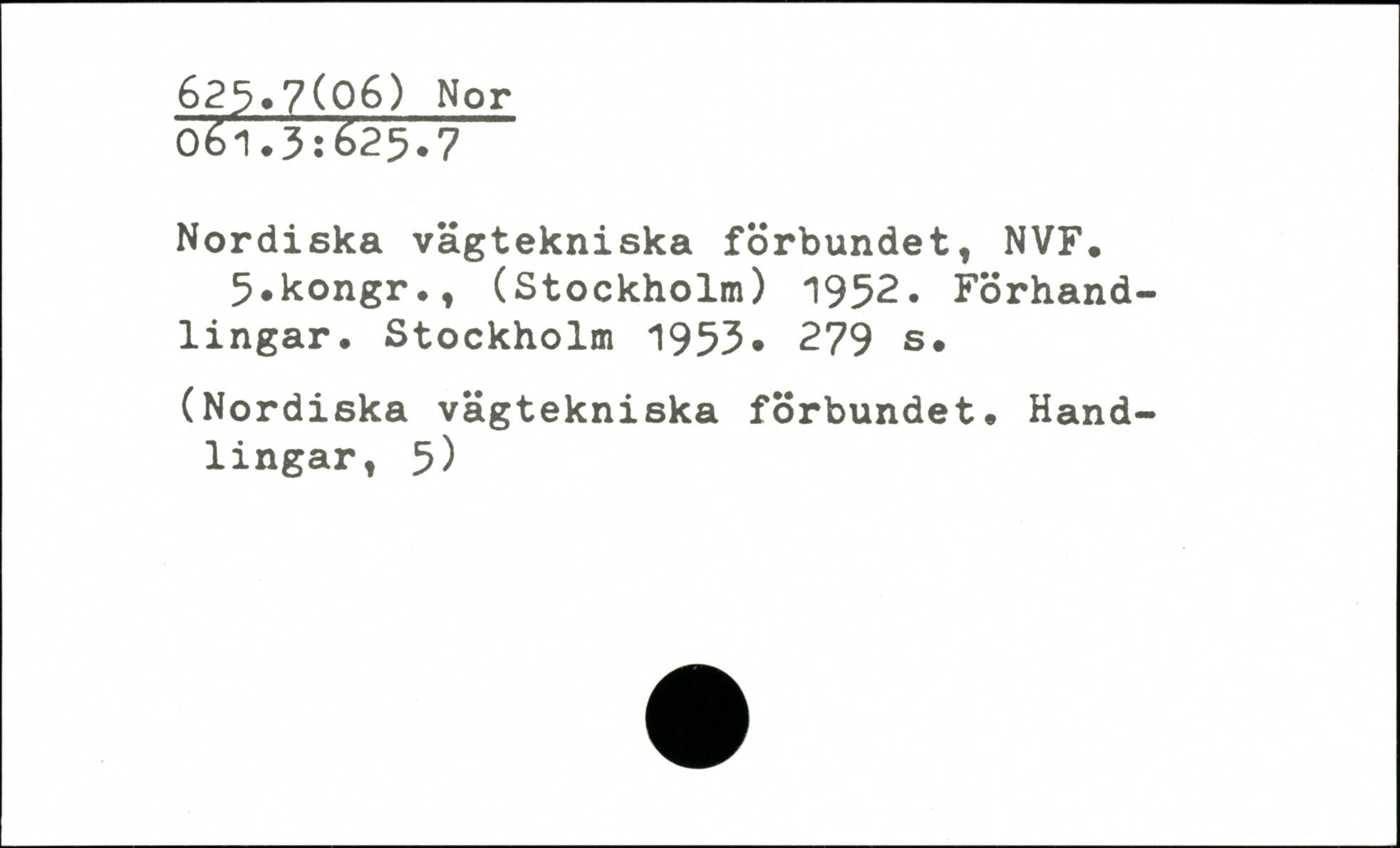 Nordiska vägtekniska förbundet, NVF. 5.kongr., (Stockholm) 1952. Förhandlingar.