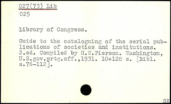 Guide to the cataloguing of the serial publications of societies and institutions.