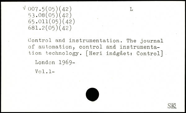Control and instrumentation. The journal of automation, control and instrumentation technology. [Heri indgået: Control]