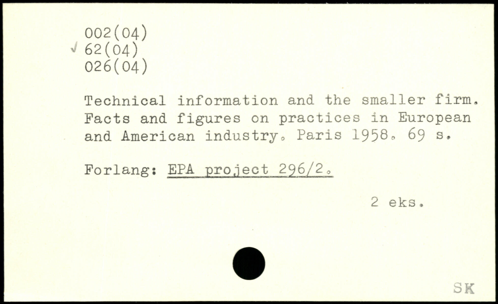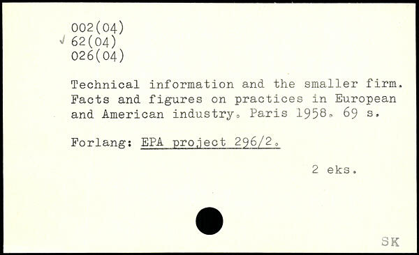 Technical information and the smaller firm. Facts and figures on practices in European and American industry: