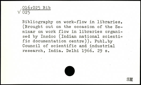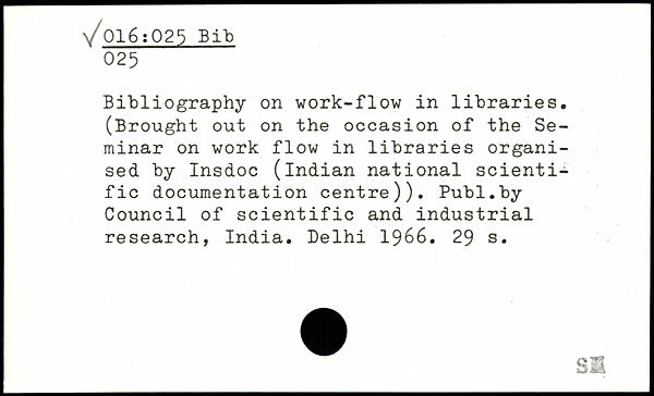 Bibliography on work-flow in libraries. (Brought out on the occasion of the Seminar on work flow in libraries organised by Insdoc (Indian national scientific documentation centre)).