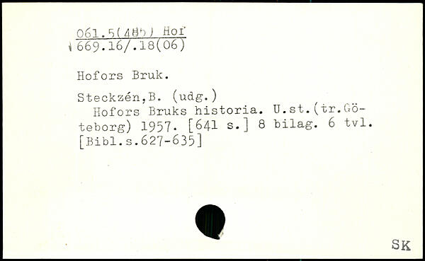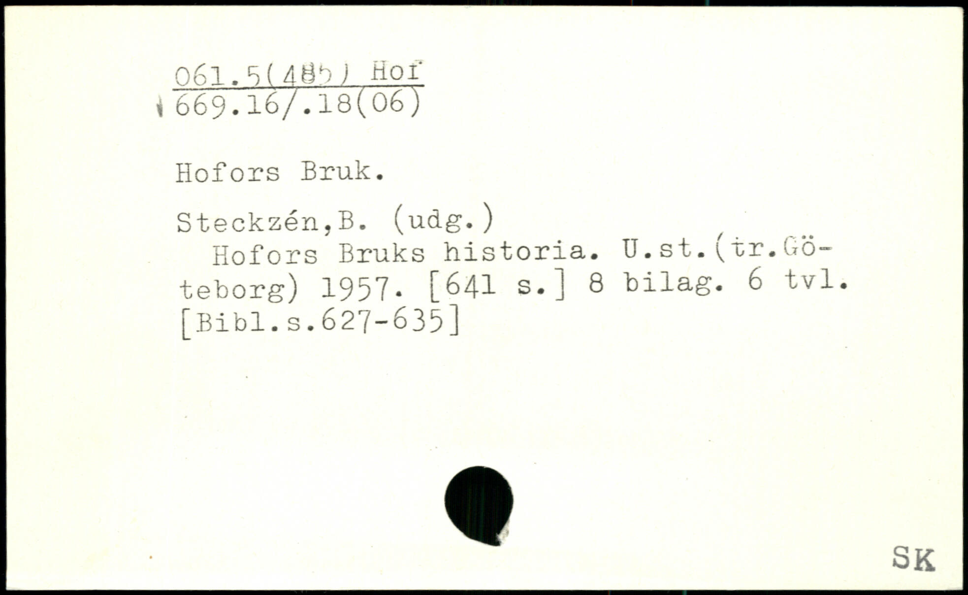 Hofors Bruk. Steckzén,B. (udg.) Hofors Bruks historia. U.st.(tr.Göteborg) 1957- [
