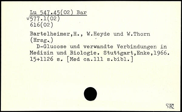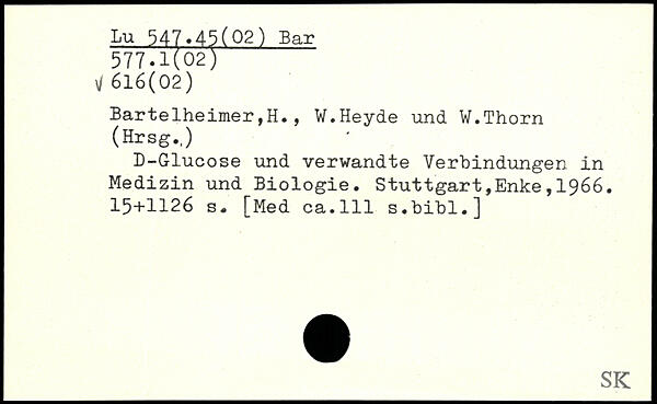 Bartelheimer,H., W.Heyde und. W.Thorn (Hrsg.,) D-Glucose und verwandte Verbindungen, in Medizin und Biologie.