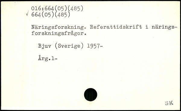 Näringsforskning,, Referattidskrift i närings-forskningsfrågor. Bjuv (Sverige) 1957“ irg.l-