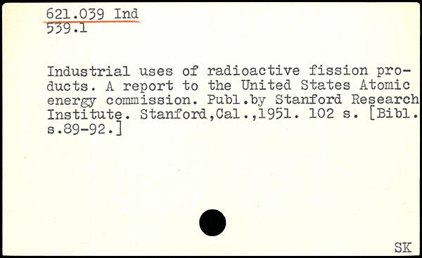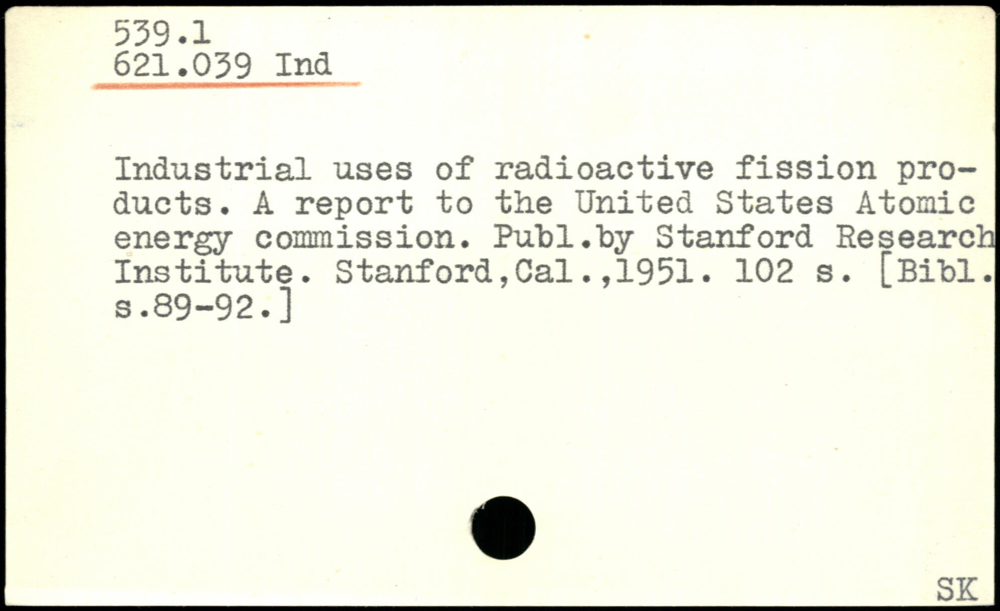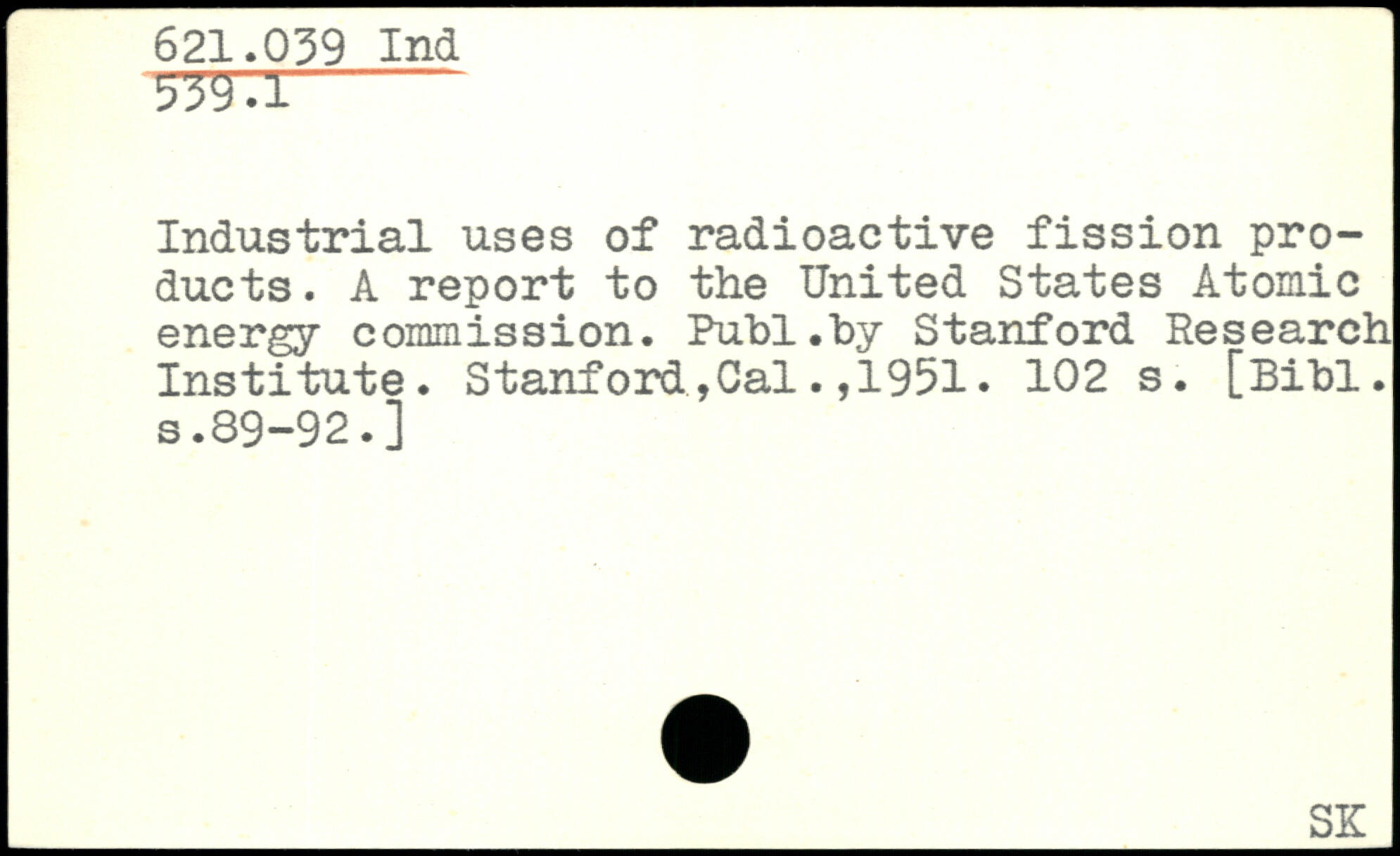 Industrial uses of radioactive fission products. A report to the United States Atomic energy commission.