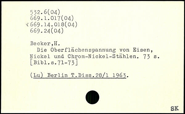 Die Oberflächenspannung von Eisen, Nickel und Chrom-Nickel-Stählen.