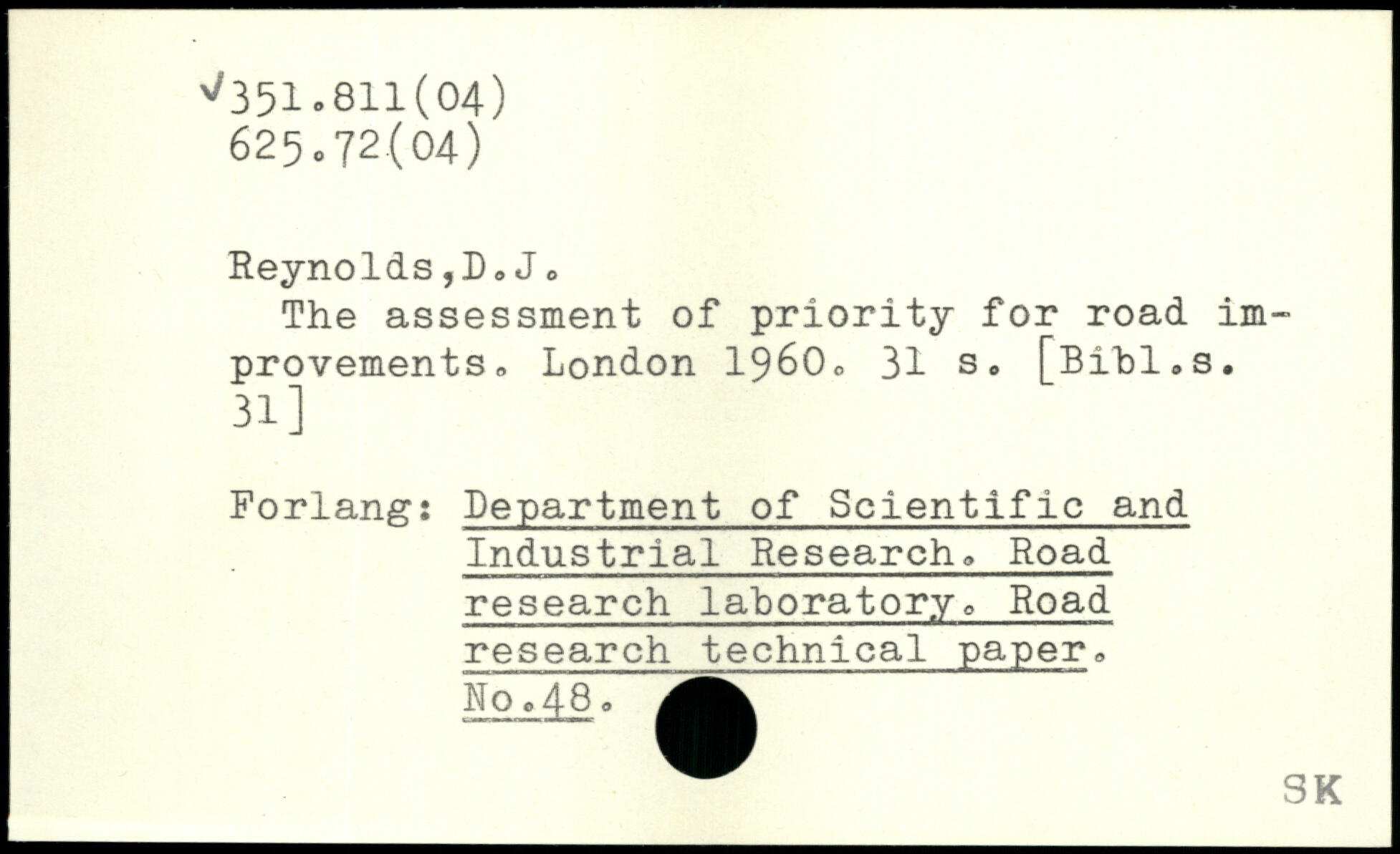 Reynolds,!). Jo The assessment of priority for road improvements.
