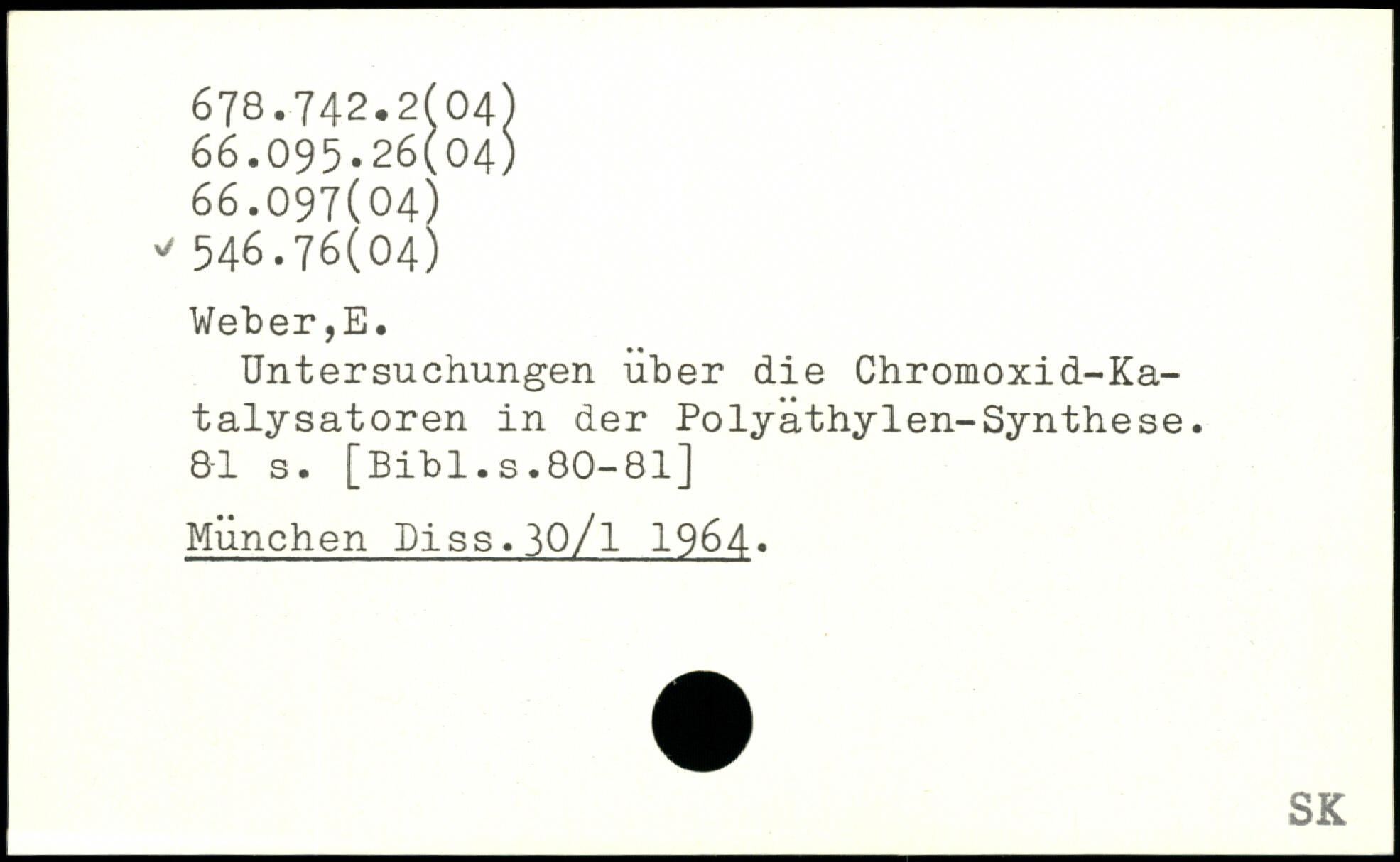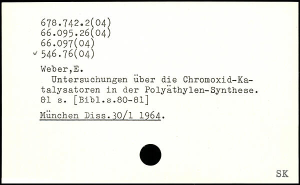 Untersuchungen über die Chromoxid-Ka-talysatoren in der Polyäthylen-Synthese.