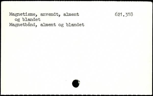 Magnetisme, anvendt, alment 621.318 og "blandet Magnetbånd, alment og blandet