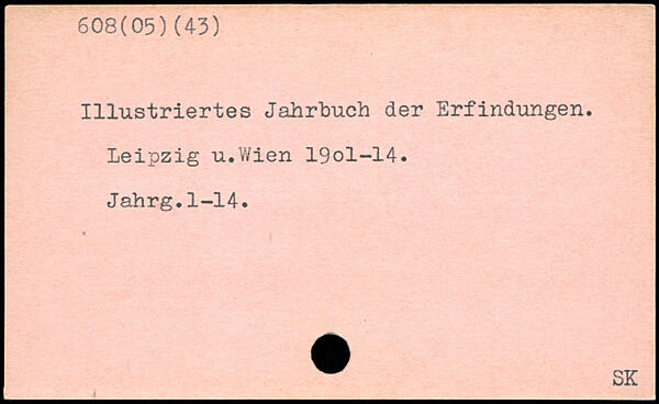 Illustriertes Jahrbuch der Erfindungen. Leipzig u.Wien 19ol-14. Jahrg.1-14. ^ SK