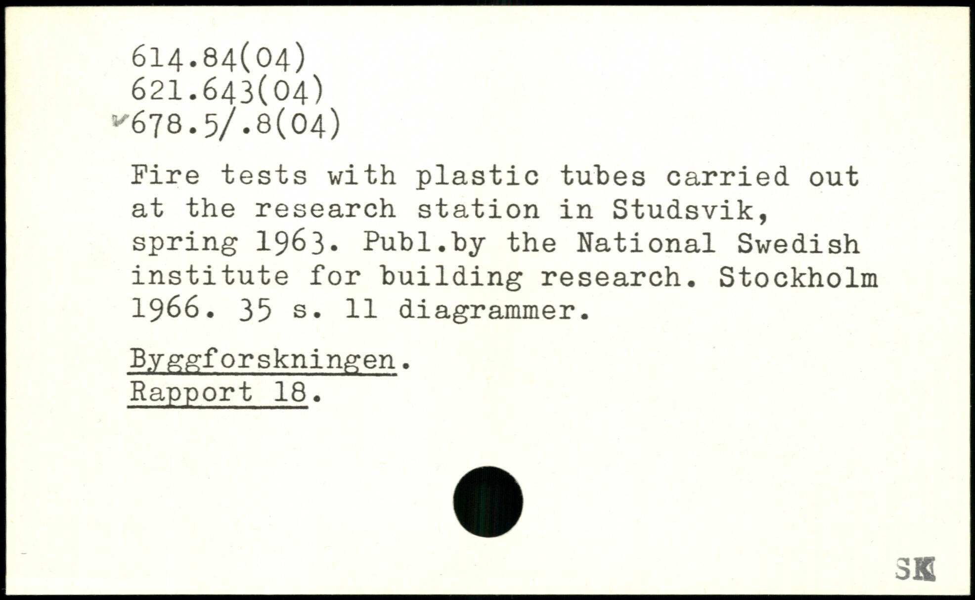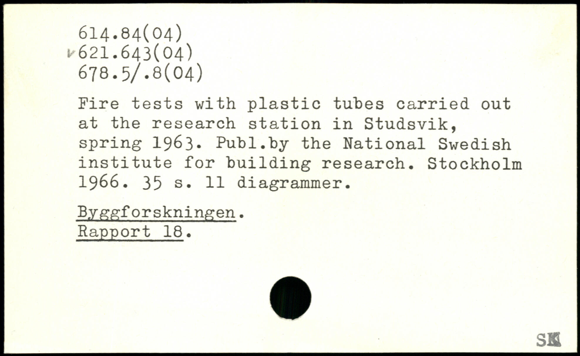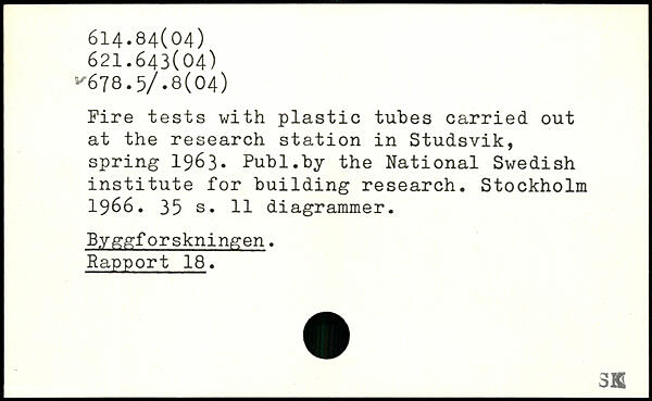 Fire tests with plastic tubes carried out at the research station in Studsvik, spring 1963.