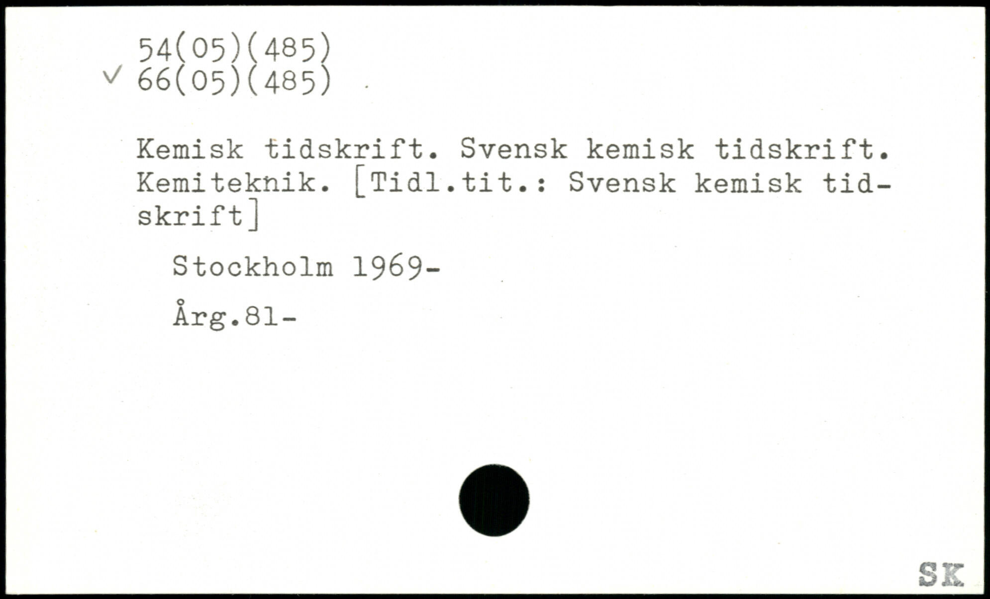 Kemisk tidskrift. Svensk kemisk tidskrift. Kemiteknik. [Tidl.tit.: Svensk kemisk tidskrift]