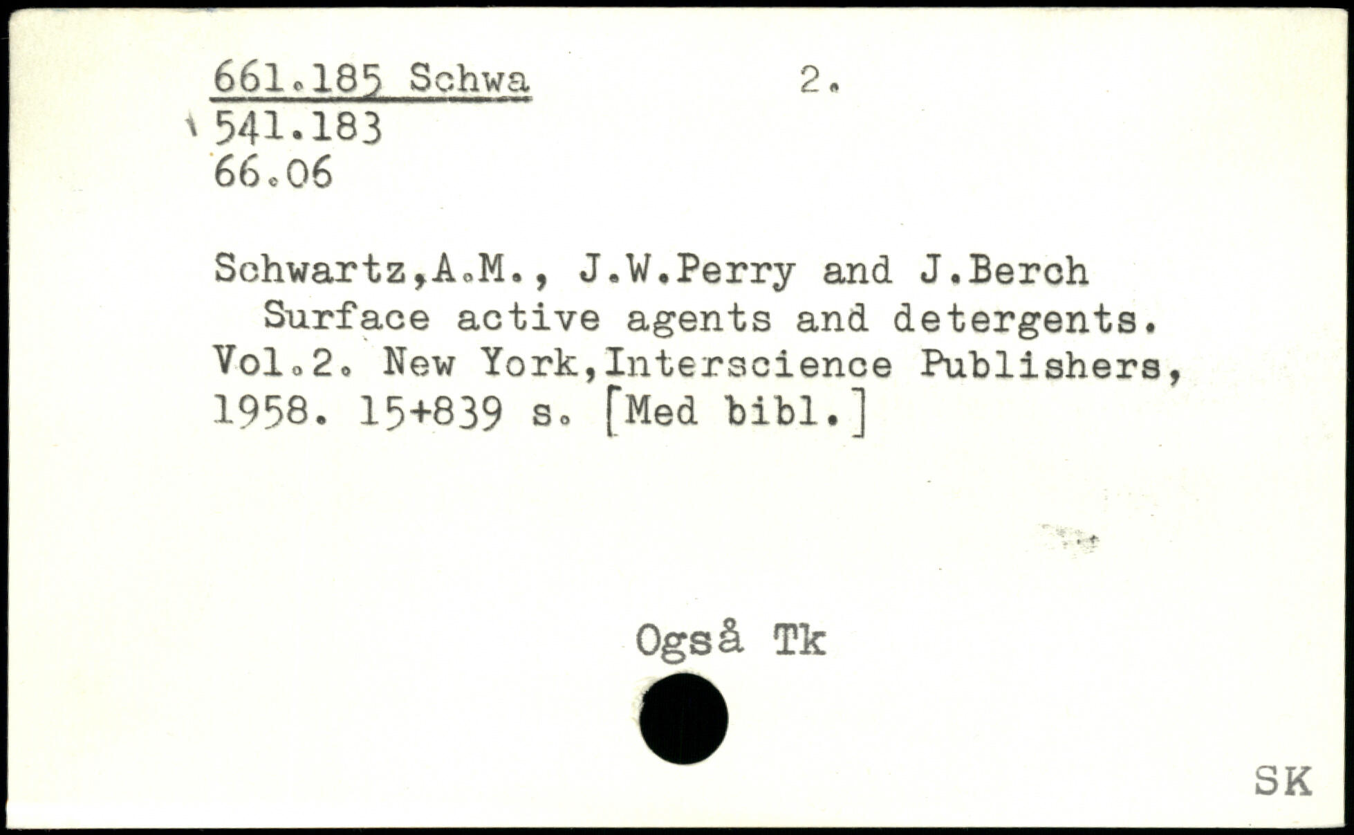 Schwartz,AoM., J.W.Perry and J.Berch Surface active agents and detergents. Volo2o