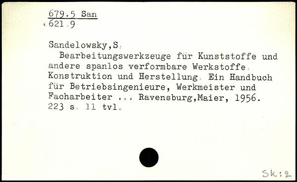 Bearbeitungswerkzeuge für Kunststoffe und andere spanlos verformbare Werkstoffe Konstruktion und Herstellung Ein Handbuch für Betriebsingenieure, Werkmeister und Facharbeiter .0.