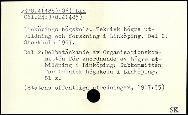 Linköpings hogskola. Teknisk högre ut- uildning och forskning i Linköping. Del 2.