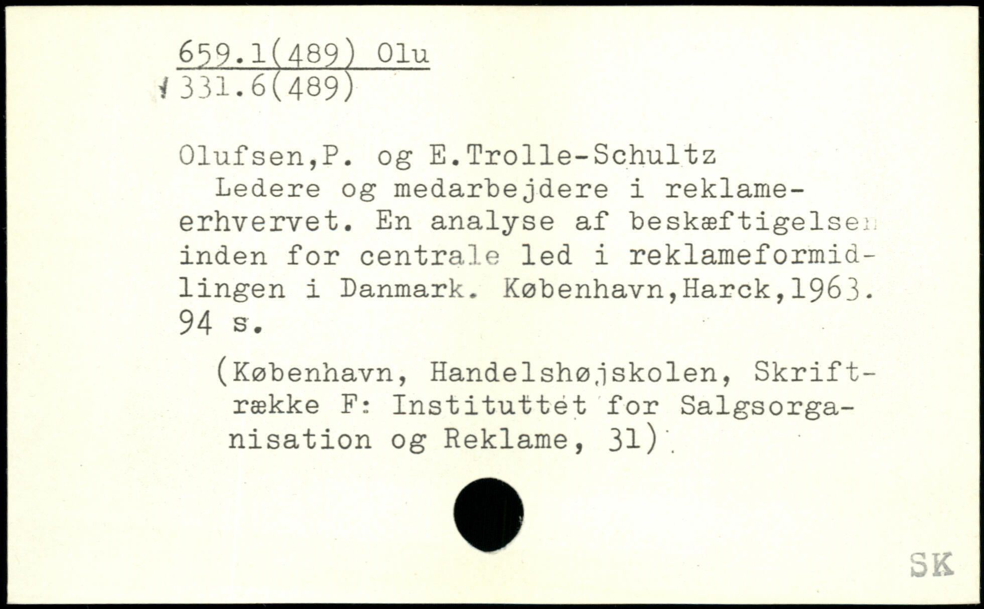 01ufsen,P. og E.Trolle-Schultz Ledere og medarbejdere i reklame-erhvervet. En analyse af beskæftigelser inden for centrale led i reklameformid-lingen i Danmark.