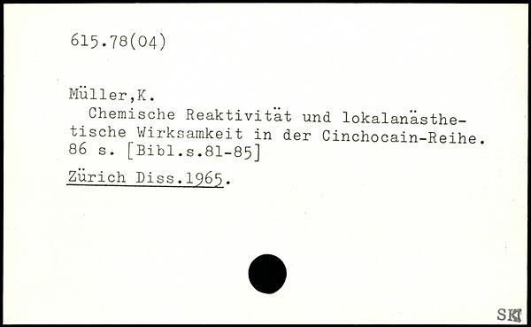 Chemische Reaktivität und lokalanasthe— tische Wirksamkeit in der Cinchocain-Reihe.