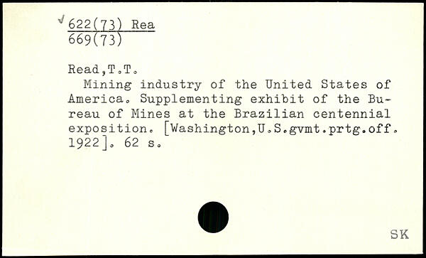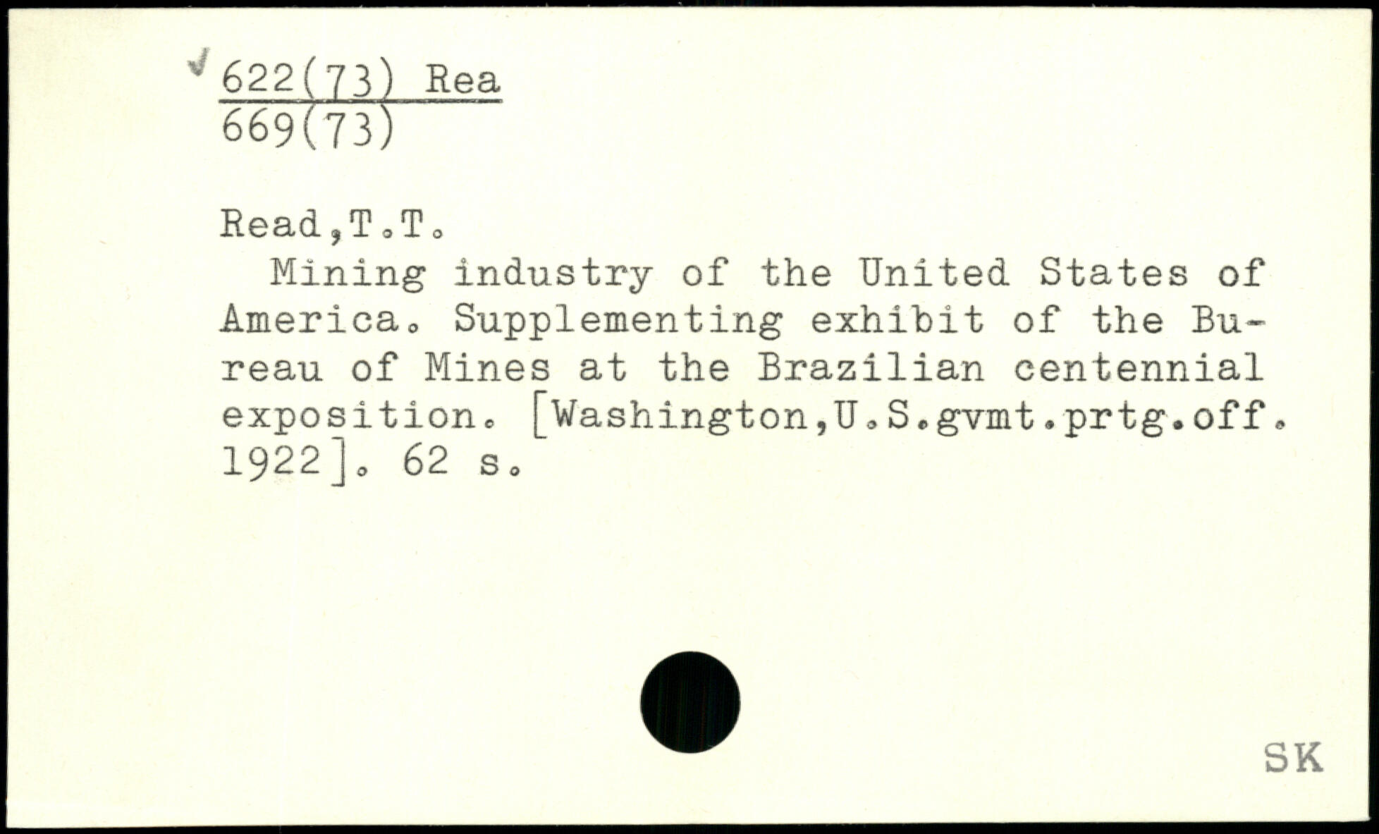 Head,T ,To Mining industry of the United States of Americao Supplementing exhibit of the Bureau of Mines at the Brazilian centennial expositionc