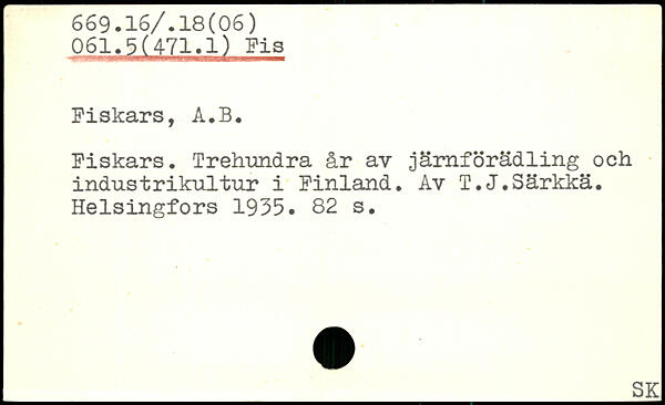 Fiskars, Trehundra år av järnförädling och industrikultur i Finland, Av T.J.Särkkä.