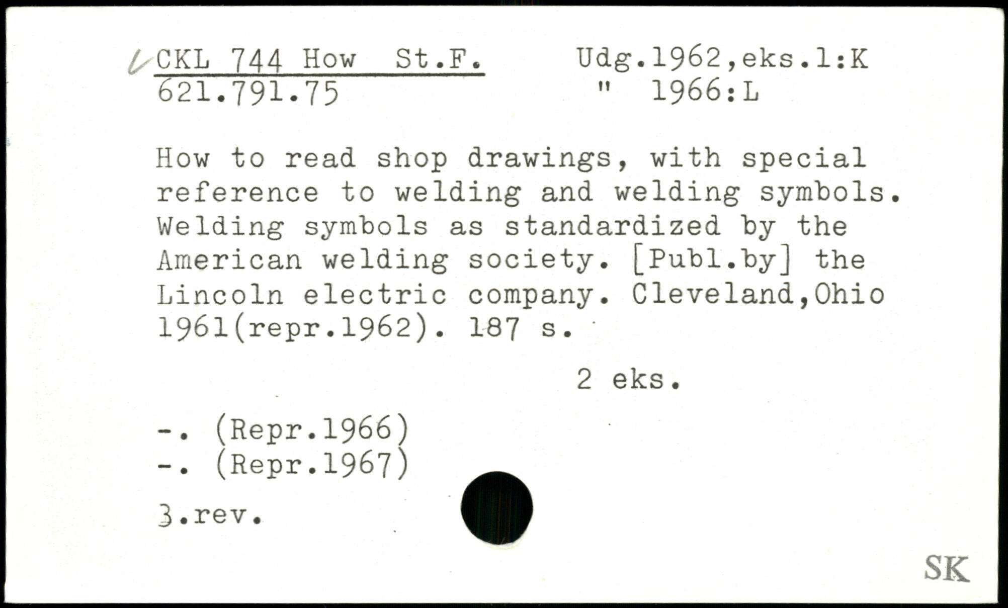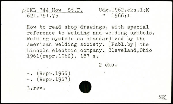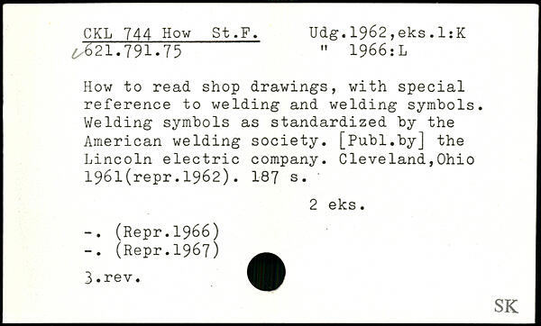 How to read shop drawings, with special reference to welding and welding symbols. Welding symbols as standardized by the American welding society.