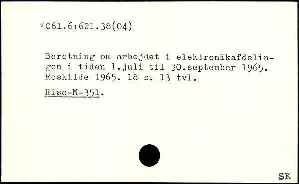 Beretning om arbejdet i elektronikafdelingen i tiden l.juli til 30.september 1965. Roskilde 1965.