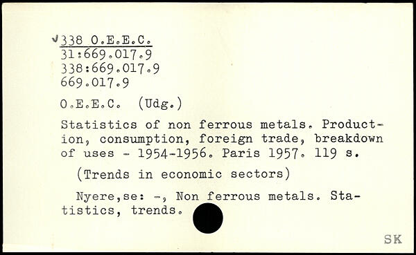 Statistics of non ferrous metals,, Production, consumption, foreign trade, breakdown of uses - 1954-1956.