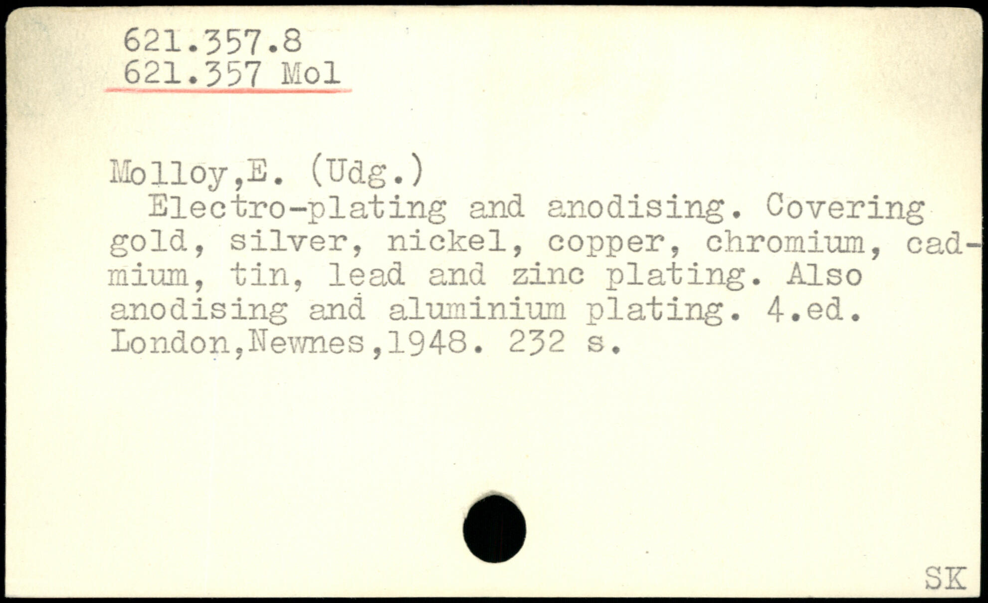 Electro-plating and anodising. Covering gold, silver, nickel, copper, chromium, cadmium, tin, lead and zinc plating. Also anodising and aluminium plating.