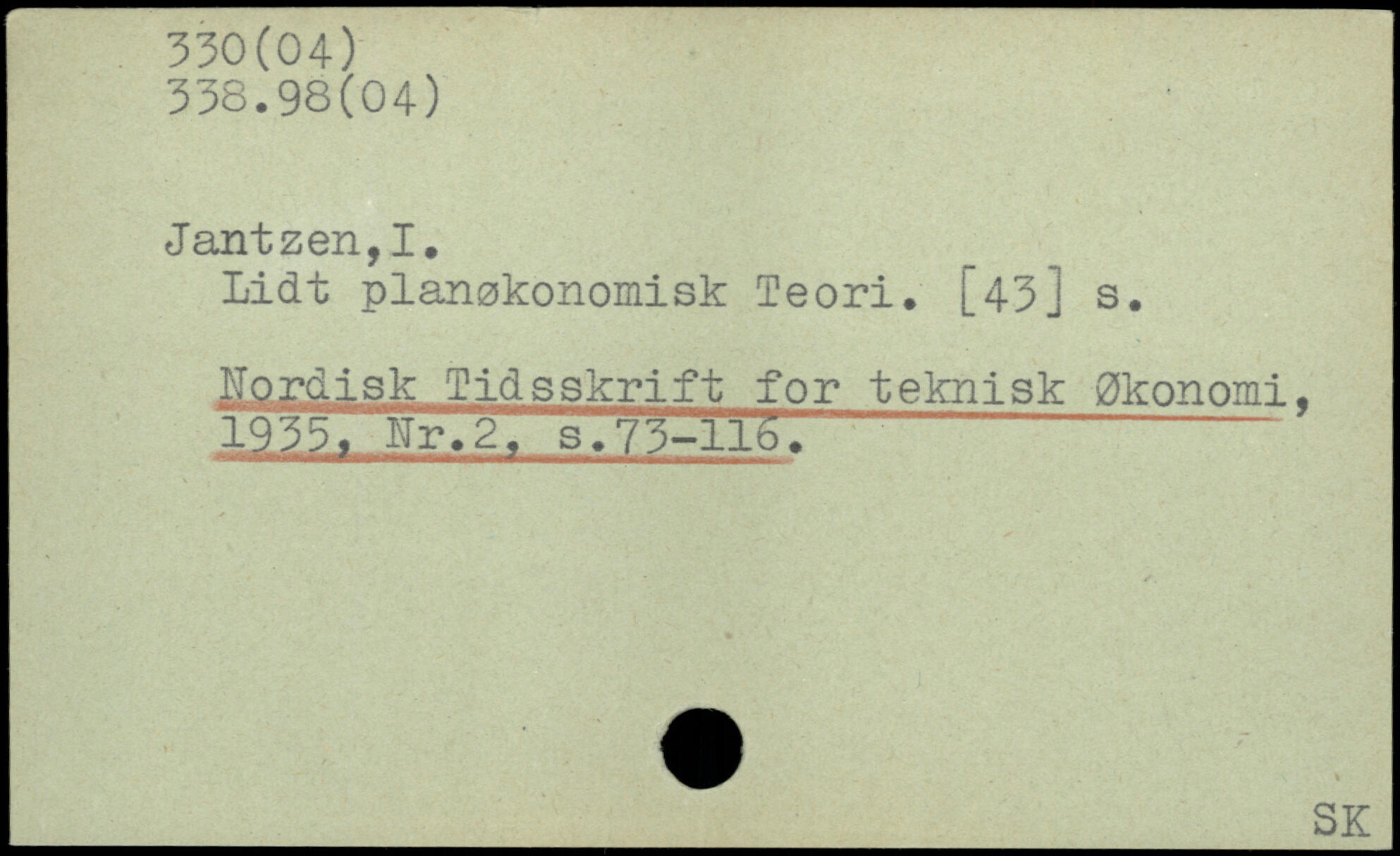 Lidt planøkonomisk Teori. [43] s. Nordisk Tidsskrift for teknisk økonomi. 1935. Nr.2. s.75-116. "