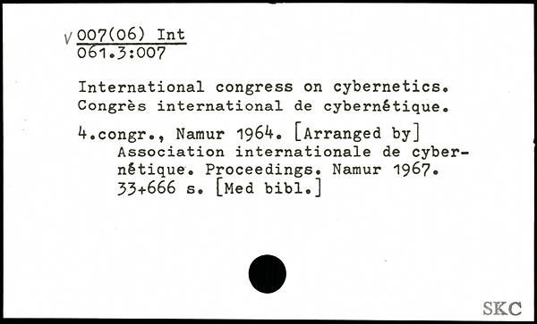 International congress on cybernetics. Congrès international de cybernétique. ^.congr., Namur 196^. [Arranged by] Association internationale de cybernétique. Proceedings. Namur 1967.