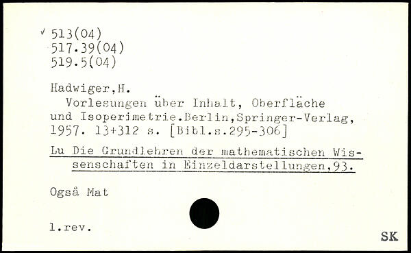 Vorlesungen über Inhalt, Oberfläche und Isoperimetrie.ßerlin,Springer-Verlag, 1957-