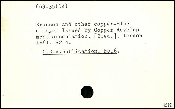Brasses and other copper-zinc alloys. Issued by Copper development association. [