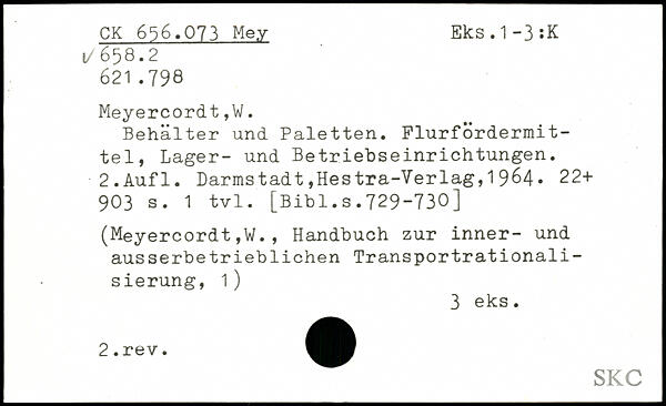 Behälter und Paletten. Flürfördermittel, Lager- und Betriebseinrichtungen.
