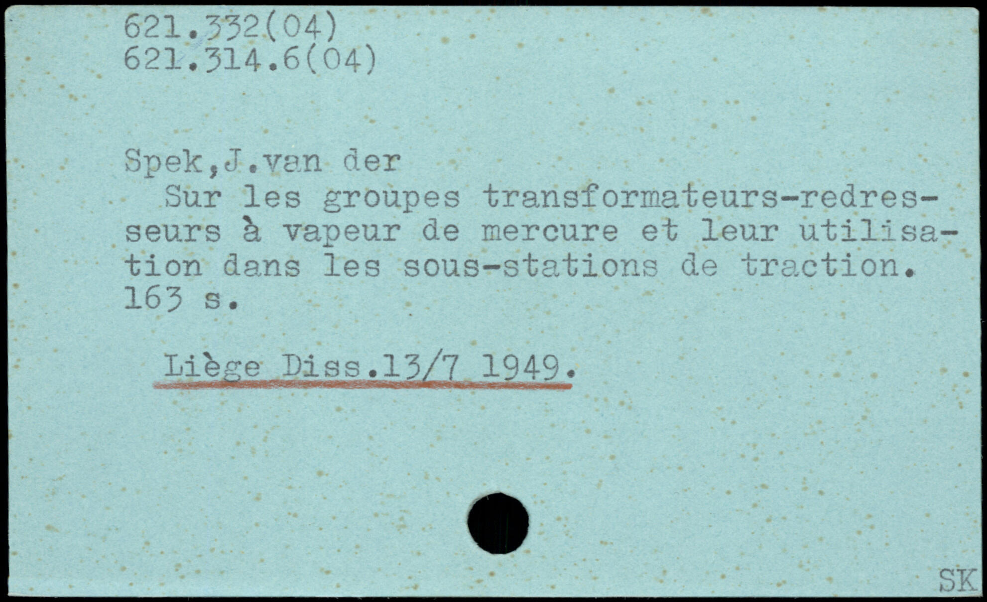 Spek,J.van der Sur les groupes transformateurs-redresseurs à vapeur de mercure et leur utilisation dans les sous-stations de traction.