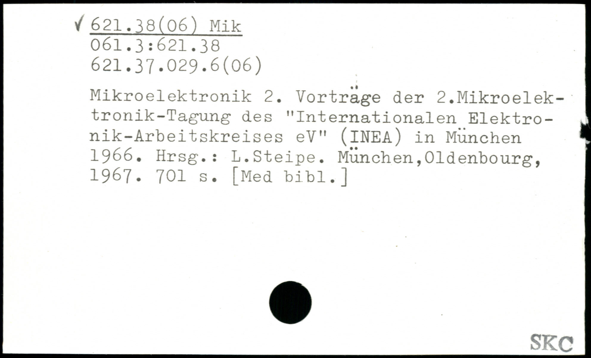 Mikroelektronik 2. Vortrage der 2.Mikroelektronik-Tagung des "Internationalen Elektronik-Arbeitskreises eV" (INEA) in München 1 1966. Hrsg.: L.Steipe.
