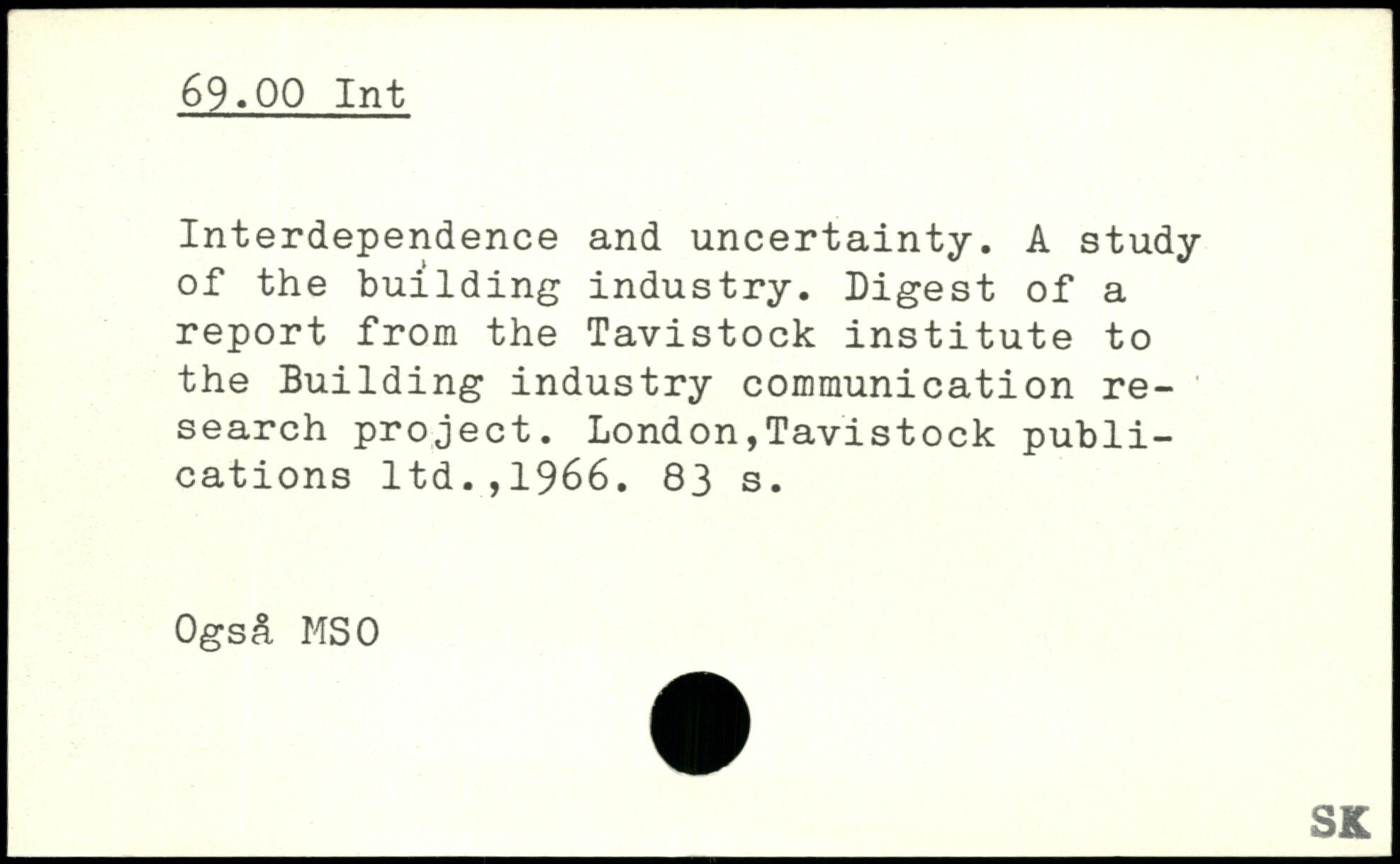 Interdependence and uncertainty. A study of the building industry. Digest of a report from the Tavistock institute to the Building industry communication research project.