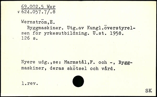 Byggmaskiner. Utg.av Kungl.överstyrelsen för yrkesutbildning. U.st. 1958