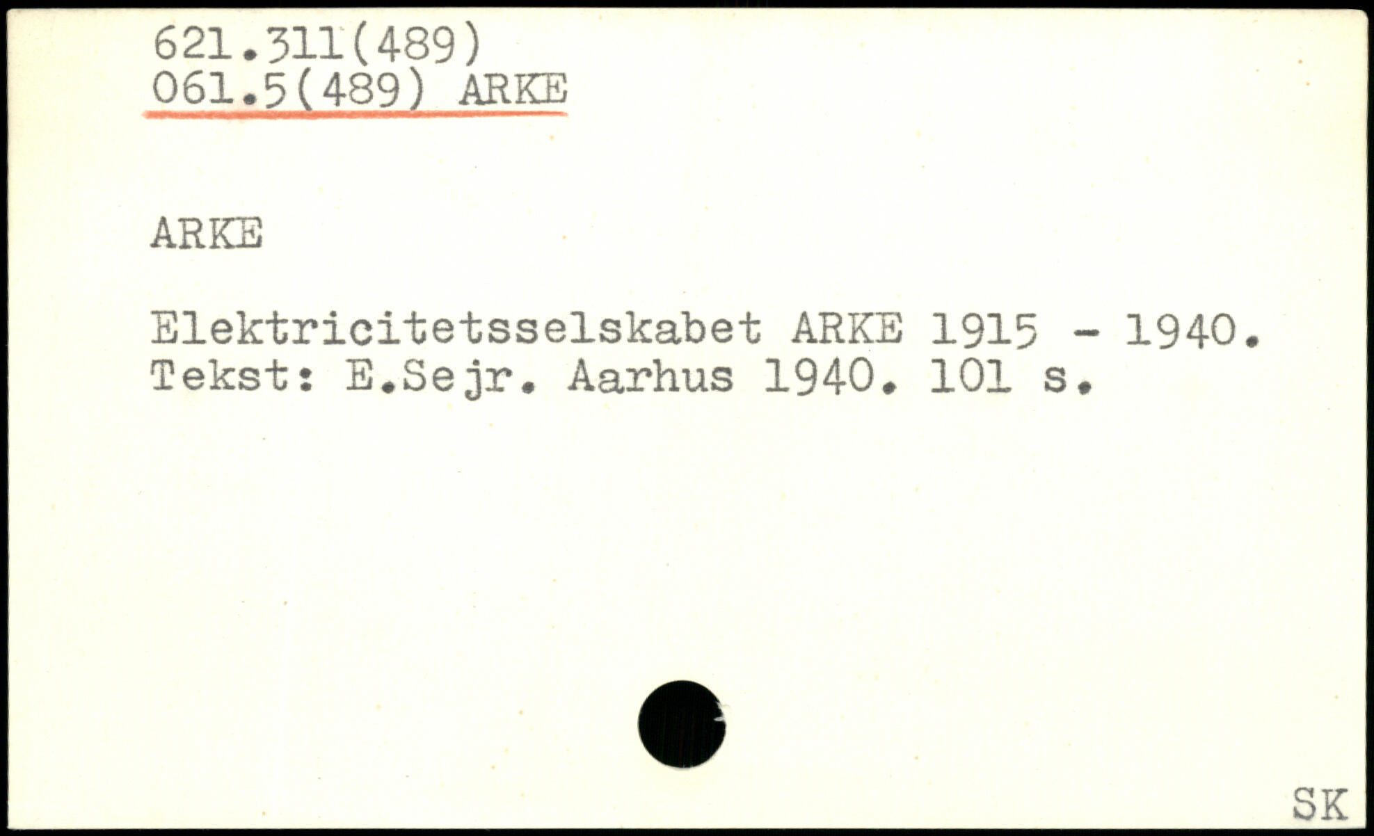 Elektricitetsselskabet ARKE 1915 - 1940. Tekst: E.Sejr.