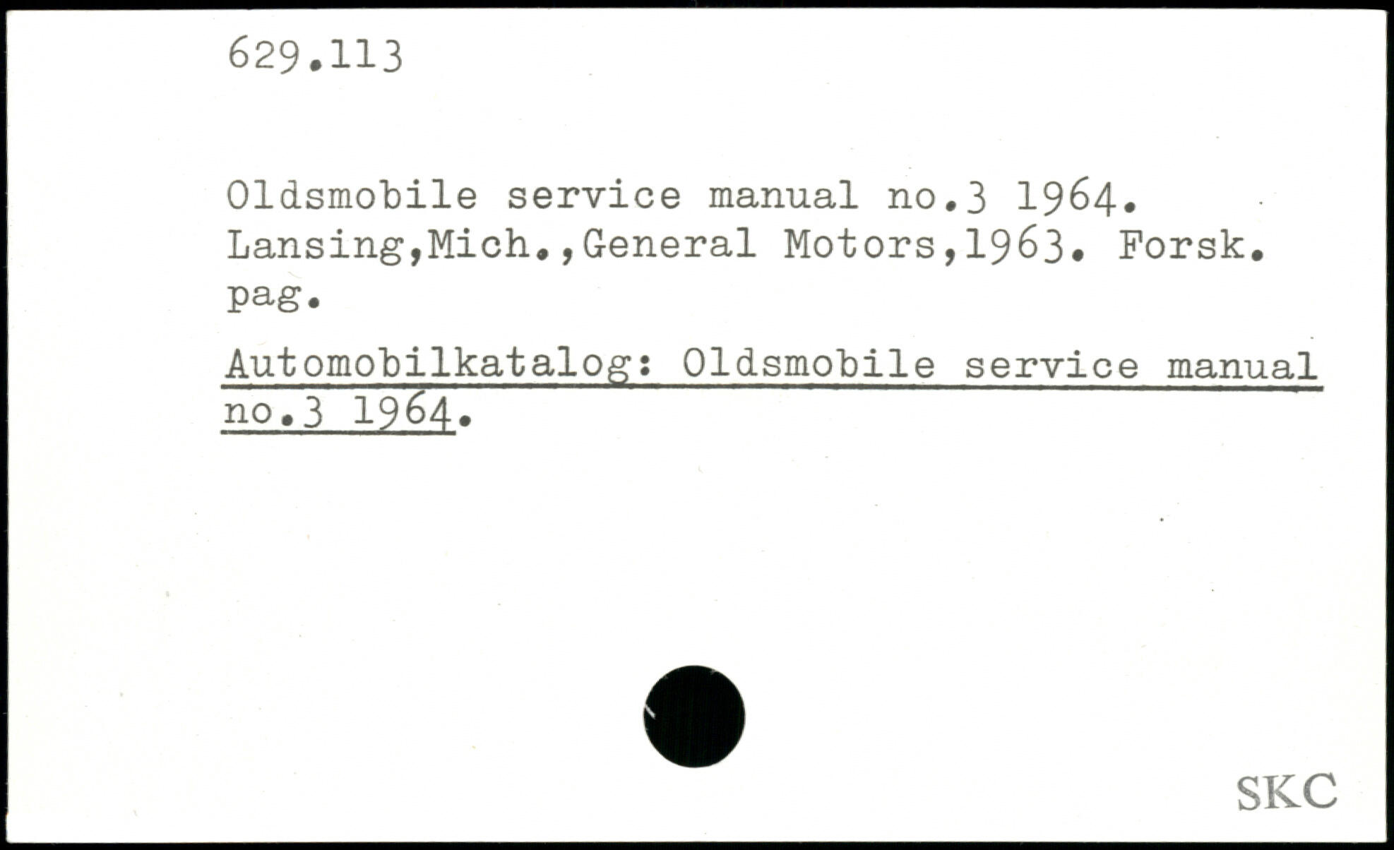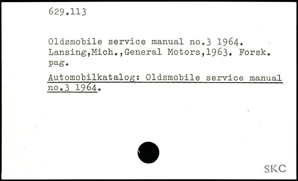 Oldsmobile service manual no.3 1964. Lansing,Mich,,General Motors,1963. Forsk, pag. AutomoLilkatalog: Oldsmobile service manual no,3 1964.