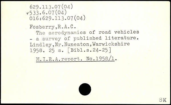 The aerodynamics of road vehicles - a survey of published literature. Lindley,Nr.Nuneaton,Warwickshire 1958.