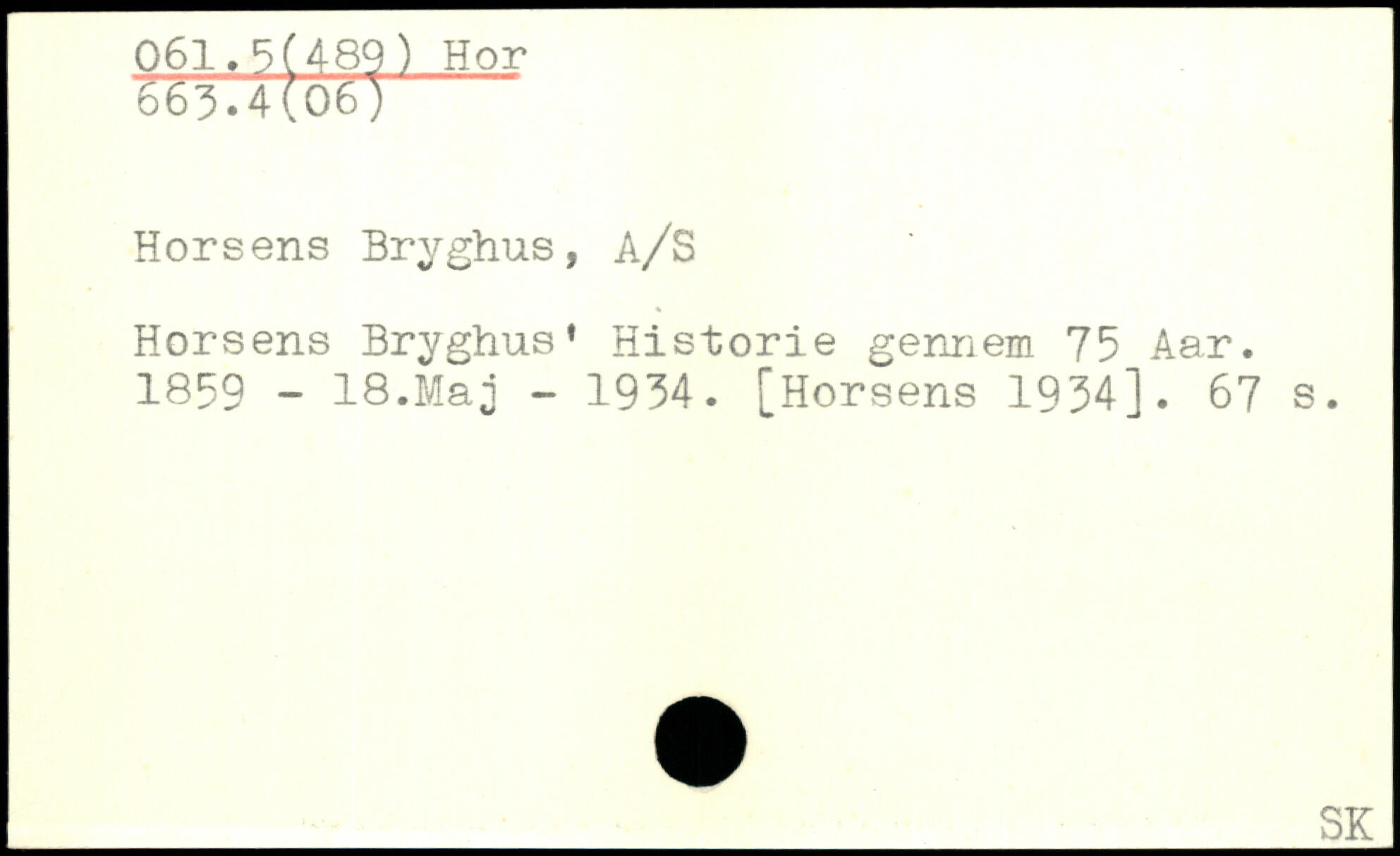 Horsens Bryghus, A/S Horsens Bryghus’ Historie gennem 75 Aar. 1859 - 18.Maj - 1934.
