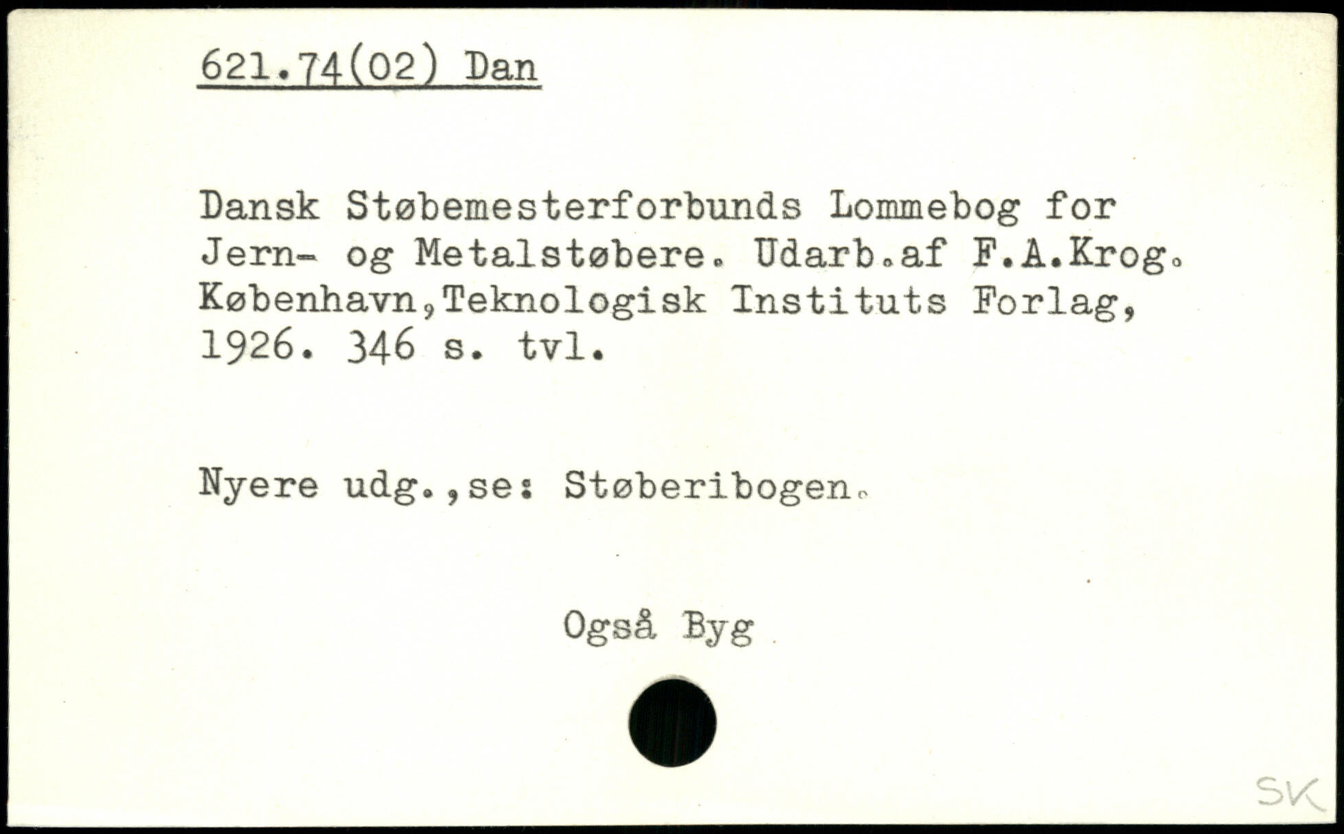 Dansk Støbemesterforbunds Lommebog for Jern- og Metalstøbere. Udarb.af F.A.