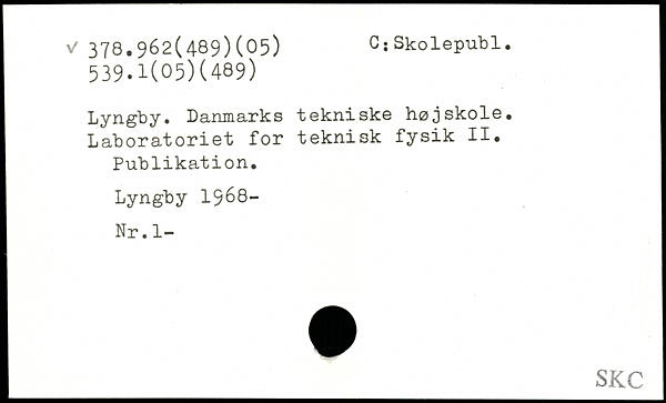 Lyngby. Danmarks tekniske højskole. Laboratoriet for teknisk fysik II. Publikation. Lyngby 1968-Nr.l-