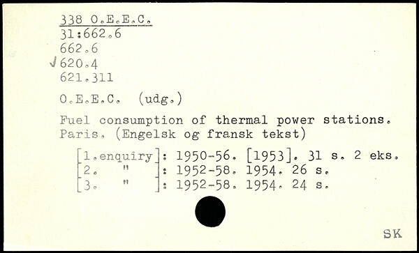 Fuel consumption of thermal power stations. Paris, (Engelsk og fransk tekst) 1.enquiry : 1950-56. [1953J.