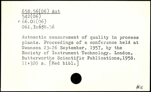 Automatic measurement of quality in process plants. Proceedings of a conference held at Swansea 23-