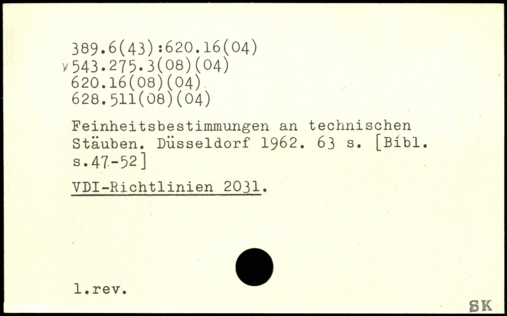 FeinheitsbeStimmungen an technischen Stäuben. Düsseldorf 1962.