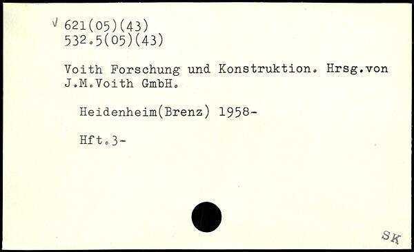 Voith Forschung und Konstruktion. Hrsg.von J.M.Voith GmbH. Heidenheim(Brenz) 1958- Hft.3-