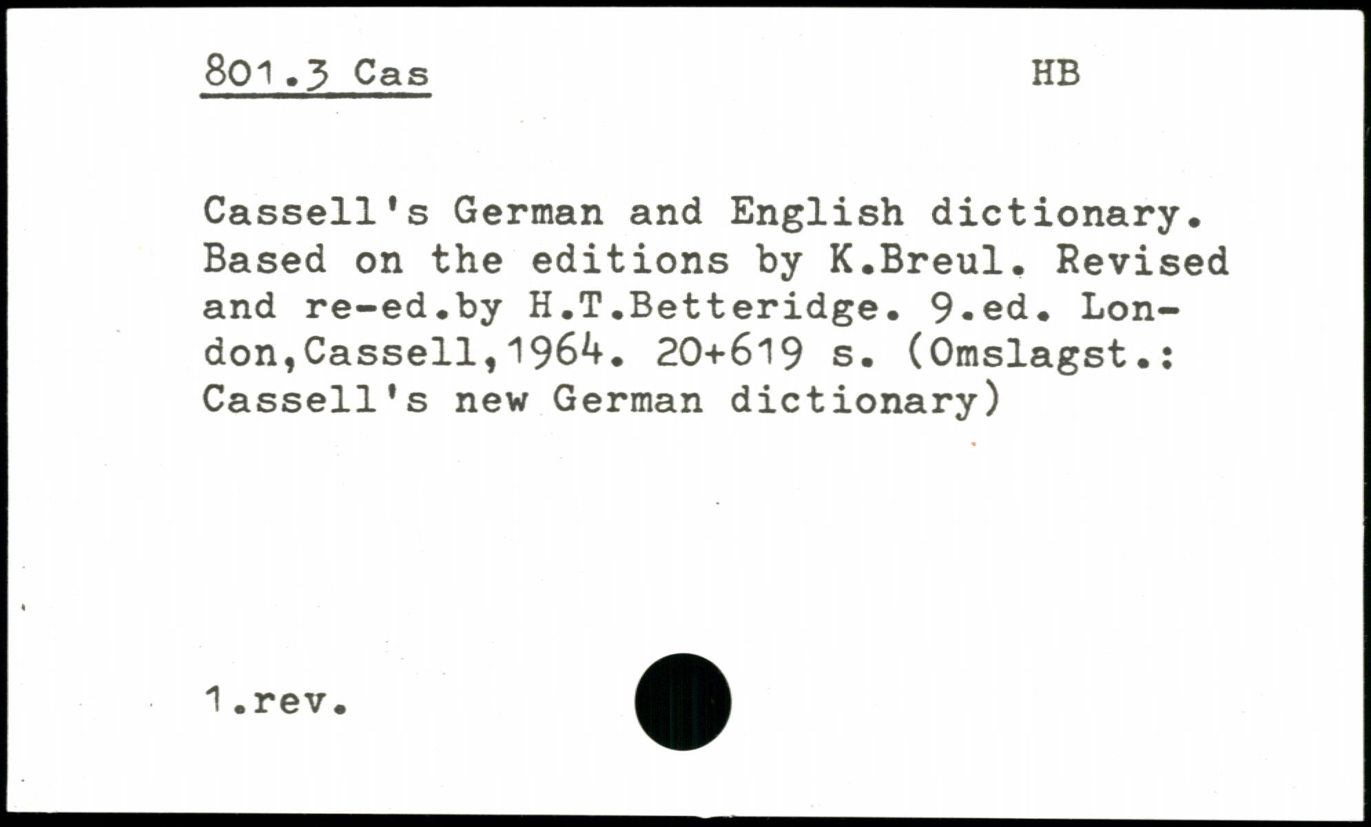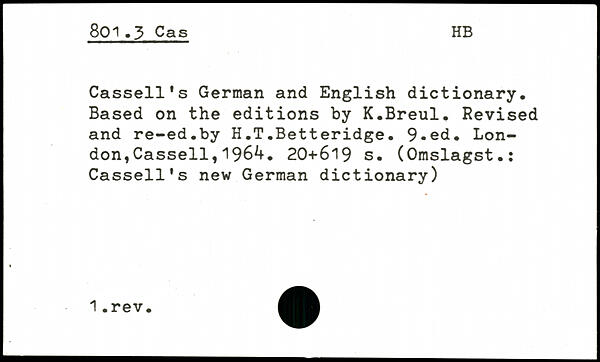 Cassell's German and English dictionary. Based on the editions by K.Breul. Revised and re-ed.by H.T.Betteridge. 9-ed. London, Cassell,196^.